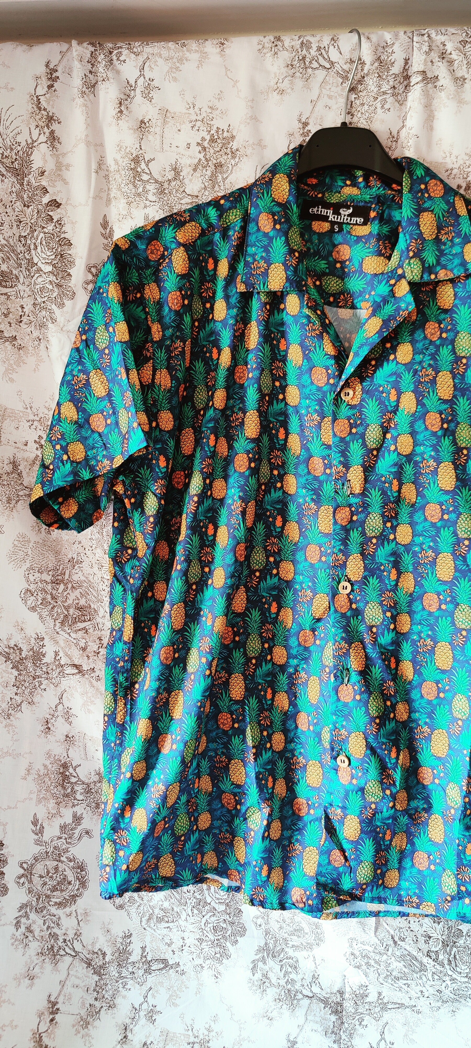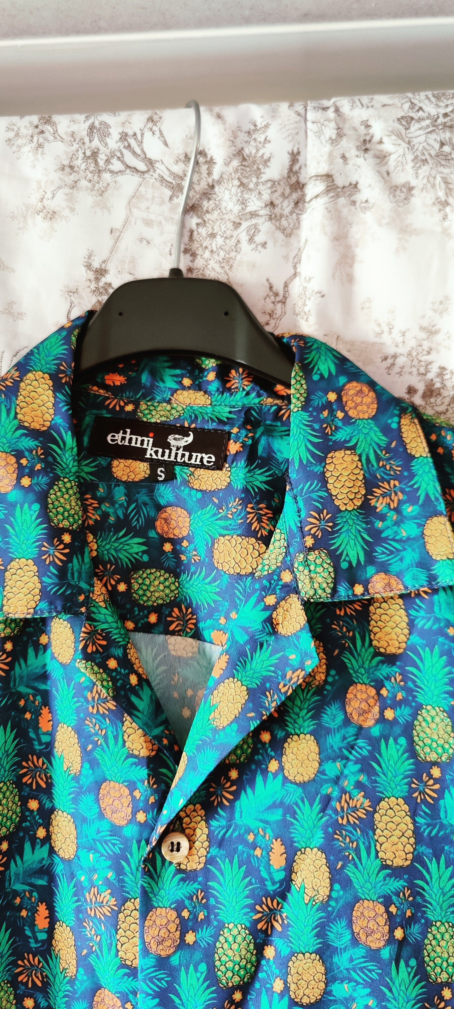 CAMISA DE CABALLERO TALLA S ESYTAMPADO DE PIÑAS SUPER FRESQUITA PARA VERANO